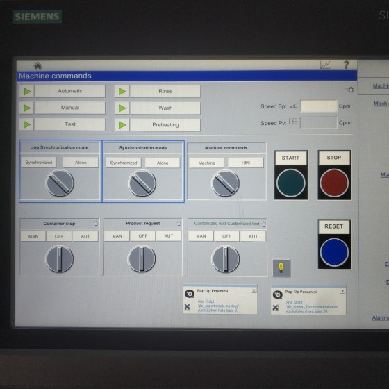 Scada Programı bozulan makinenin PLC programı makinenin çalışma seneryosuna göre yeni baştan yazıldı. WinCC Flexible 2008 ile programlanan scada ekranları , mümkün olduğunca orijinal ekranlara benzer şekilde programlandı. Toplamda 6 günlük yerinde çalışma ile makina devreye alındı. (Mayıs 2022)